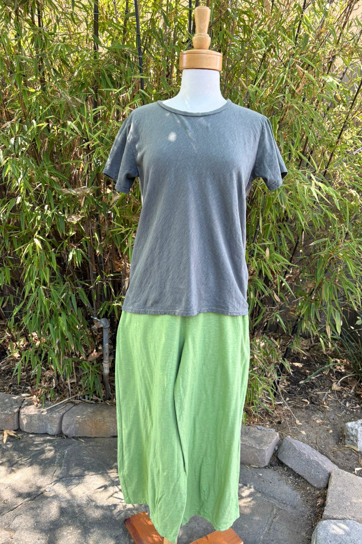 Cut Loose Fall Linen Cotton Jersey Cropped Pant w/Darts in Verde Green