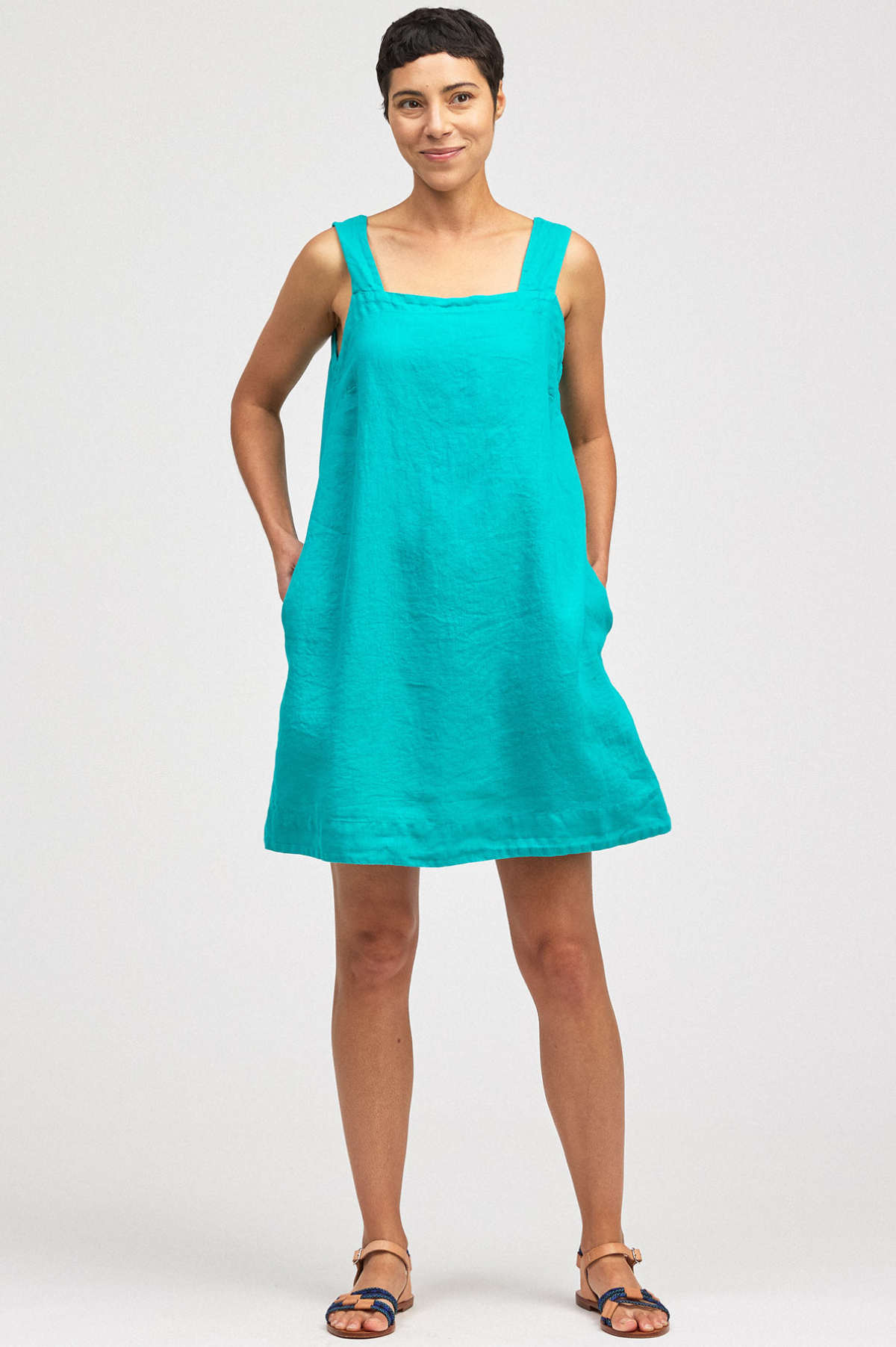 Discover the effortless elegance of the Cut Loose Hanky Linen Square Neck Shift—the perfect summer essential that demands to be in your closet. This special order piece features a flattering square neckline, supportive wide straps, and a graceful A-line silhouette that moves beautifully with you. Crafted from 100% hanky linen and made in the USA, it's the lightweight, breathable staple you'll reach for all season long.