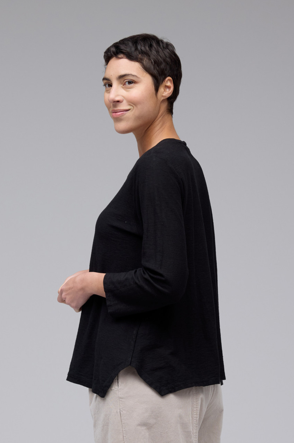 Cut Loose Linen Cotton Jersey 3/4 Side Vent Crew Top Fall 2025-Special Order
