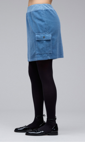 Cut Loose Lux Corduroy Cargo Walking Skirt features an elastic waistband and a side cargo pocket for convenience. Made with luxurious corduroy, this special order pant combines comfort and style effortlessly.