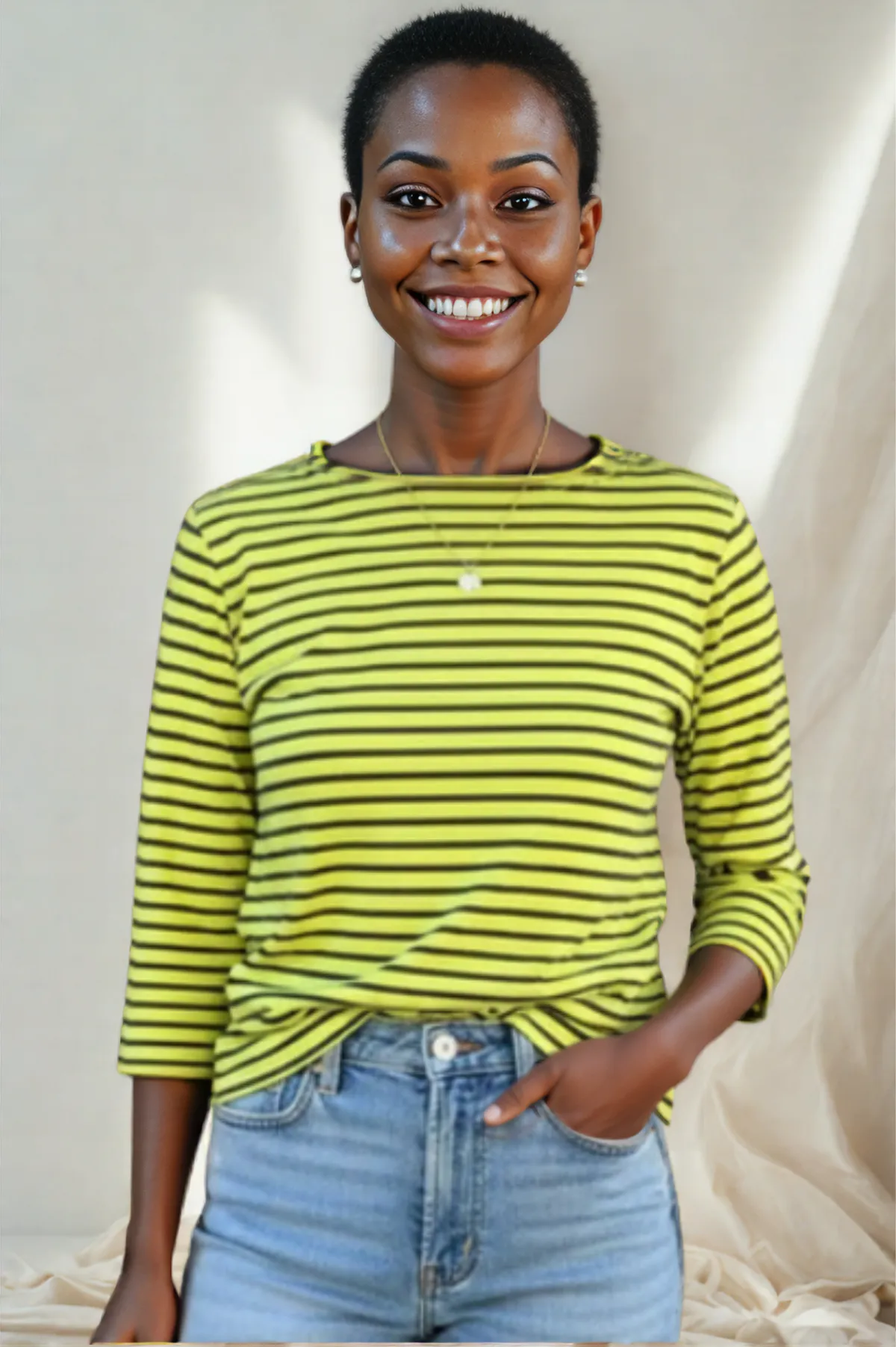 Cut Loose Navy Stripe 3/4 Sleeve Boatneck Top Summer 2026- Special Order Effortlessly elegant, this Cut Loose boatneck top features a classic navy stripe with flattering 3/4 length sleeves. Crafted from a breathable cotton-linen blend (70% cotton, 30% linen) and made in the USA, it's the perfect layering piece for warm weather.