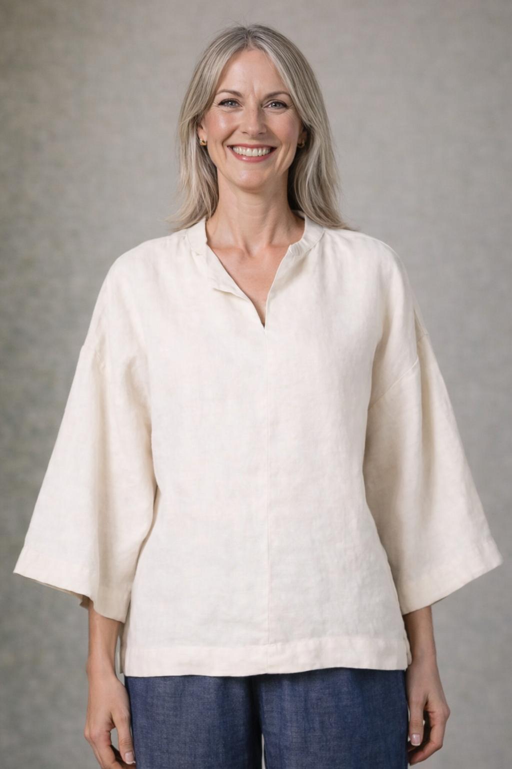 Discover effortless spring style with this Cut Loose linen pullover, designed to move with you. The relaxed drop shoulder and center seam create a flattering silhouette, while the split neck detail adds a modern touch to the classic round neckline.
