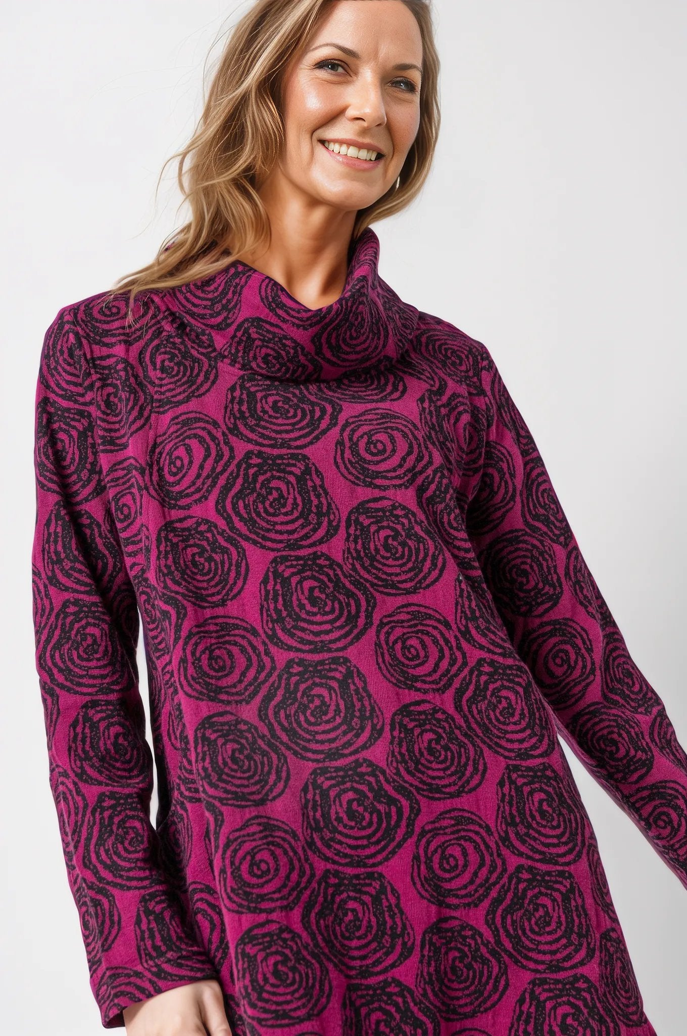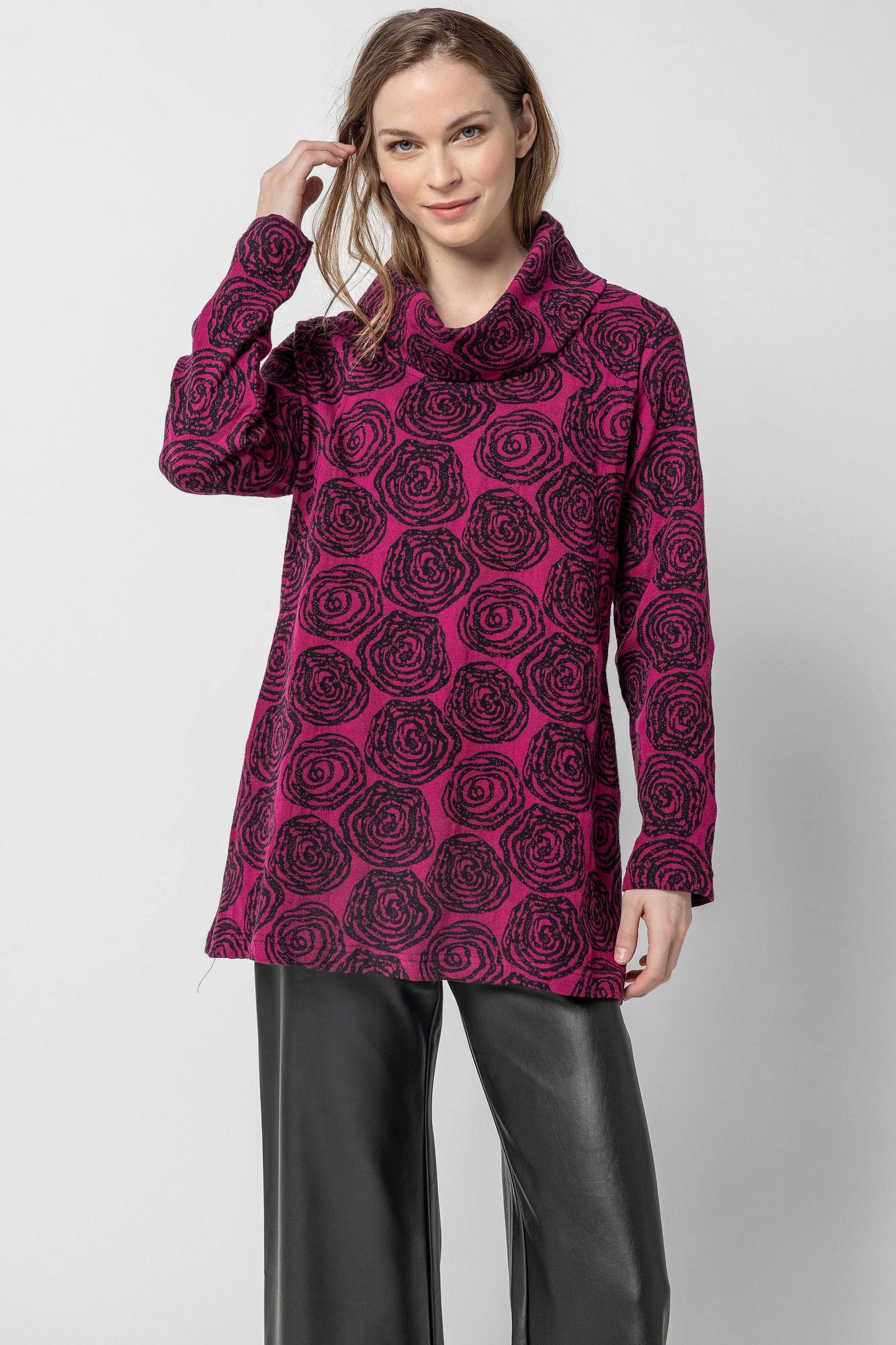 Komil Clothing Cowl Tunic Geo Floral Wineberry