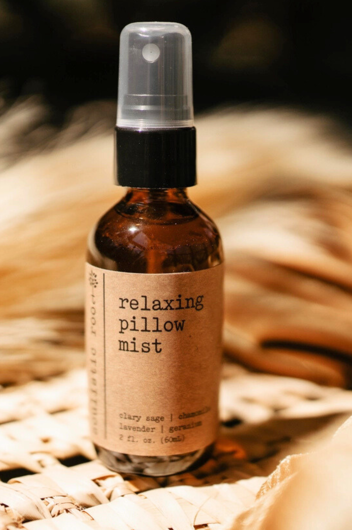 Relaxing Pillow Mist - The combination of clary sage, chamomile, geranium and lavender creates the perfect aroma for deep relaxation. Spray on your pillow before bed, before meditation or throughout the day to calm the mind.